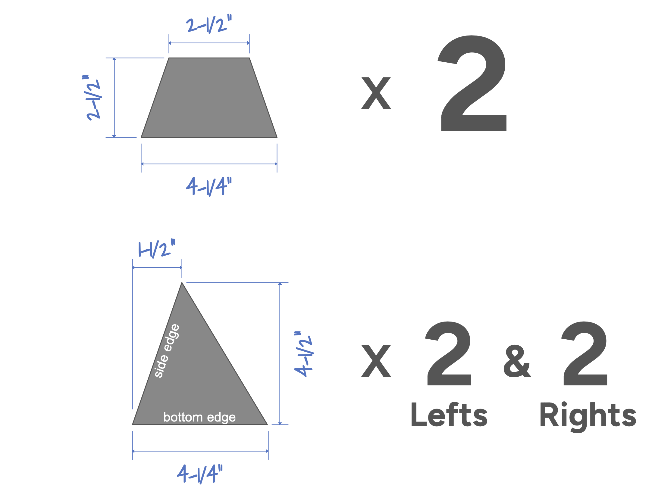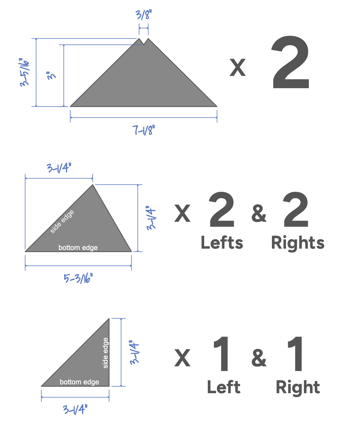 See the dimensions of the different patches below. Take special note of which edges align with the edges of the tarp. It’s easy to mix them up. Also take note of the left and right versions that are needed.