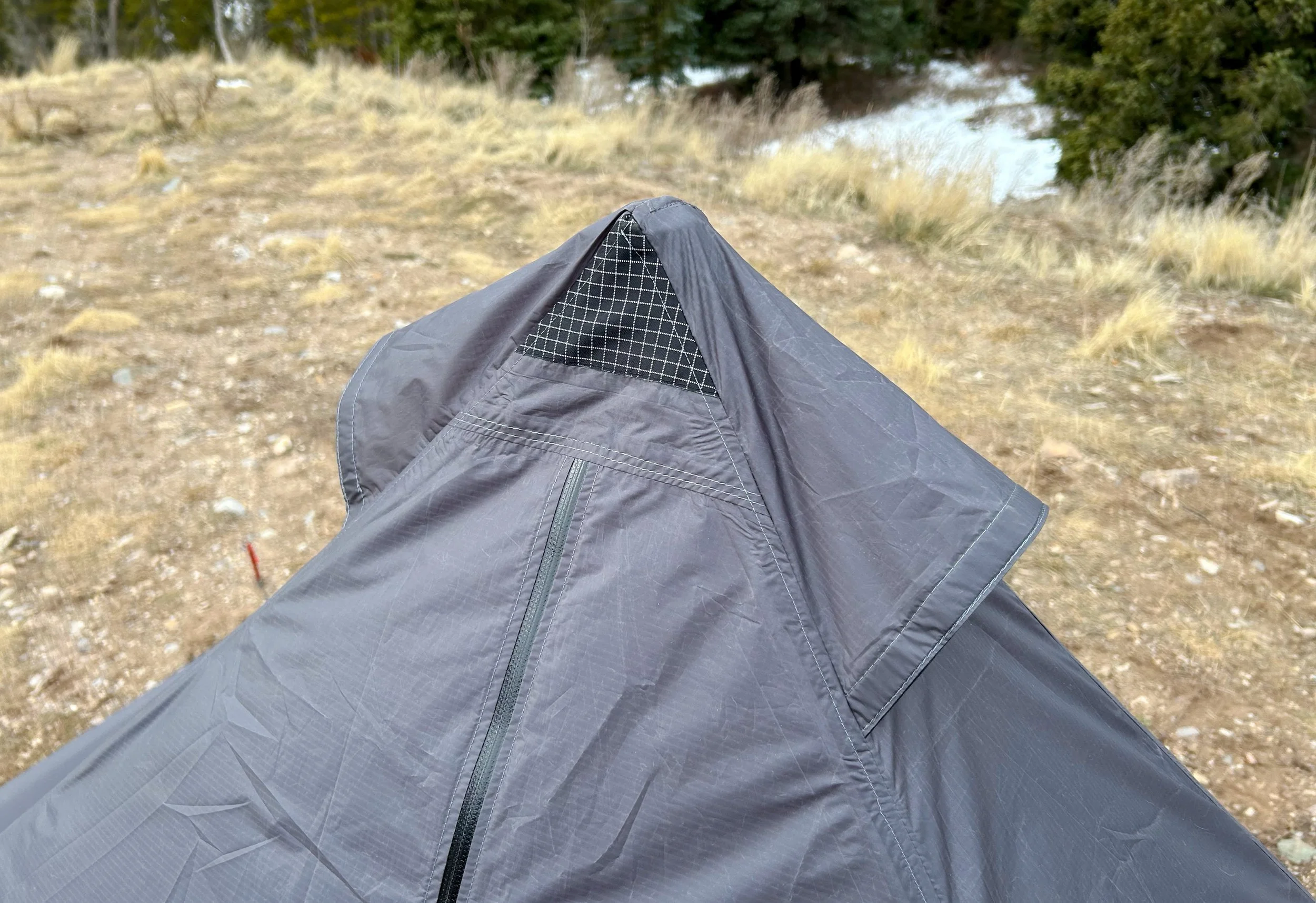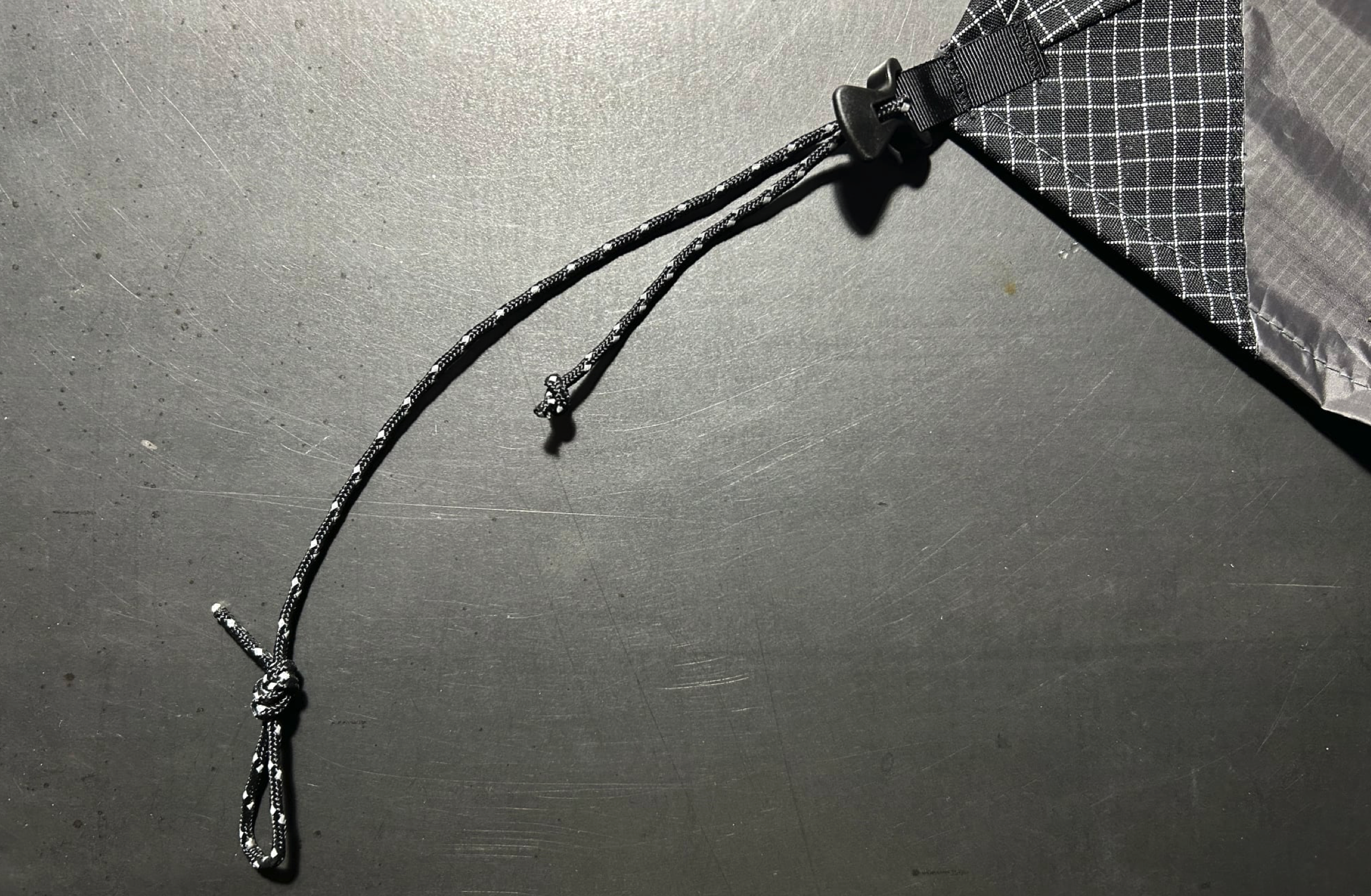 Using a hook to connect both loops will help to take some of the tension off of the door zipper. I designed, and 3D printed an adjustable hook that works like a Lineloc for this purpose, but and adjustable 1” G-hook could also be used. Even a mini carabiner tied to the guy-line with a taught line hitch could work. If you want to print your own hook like the one in the photo you can download the STL file here. (The hook was designed to be used with 2mm cord.)
