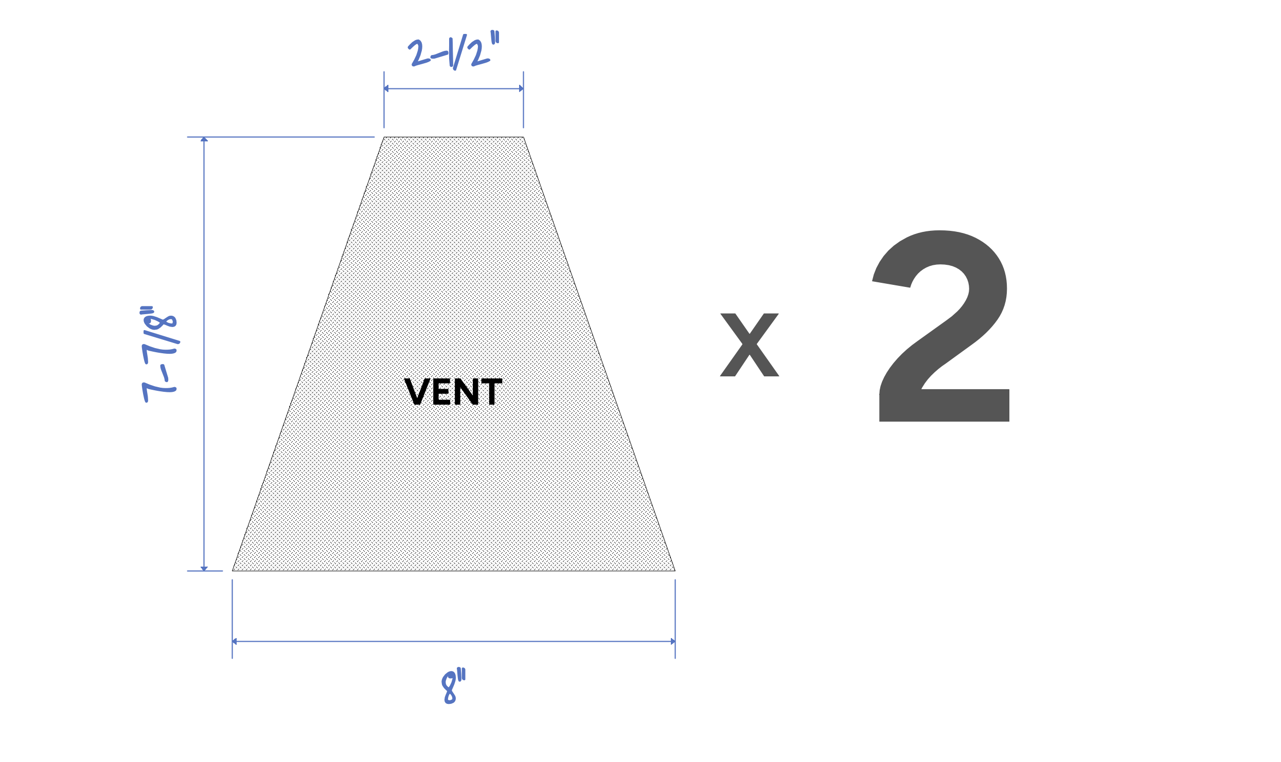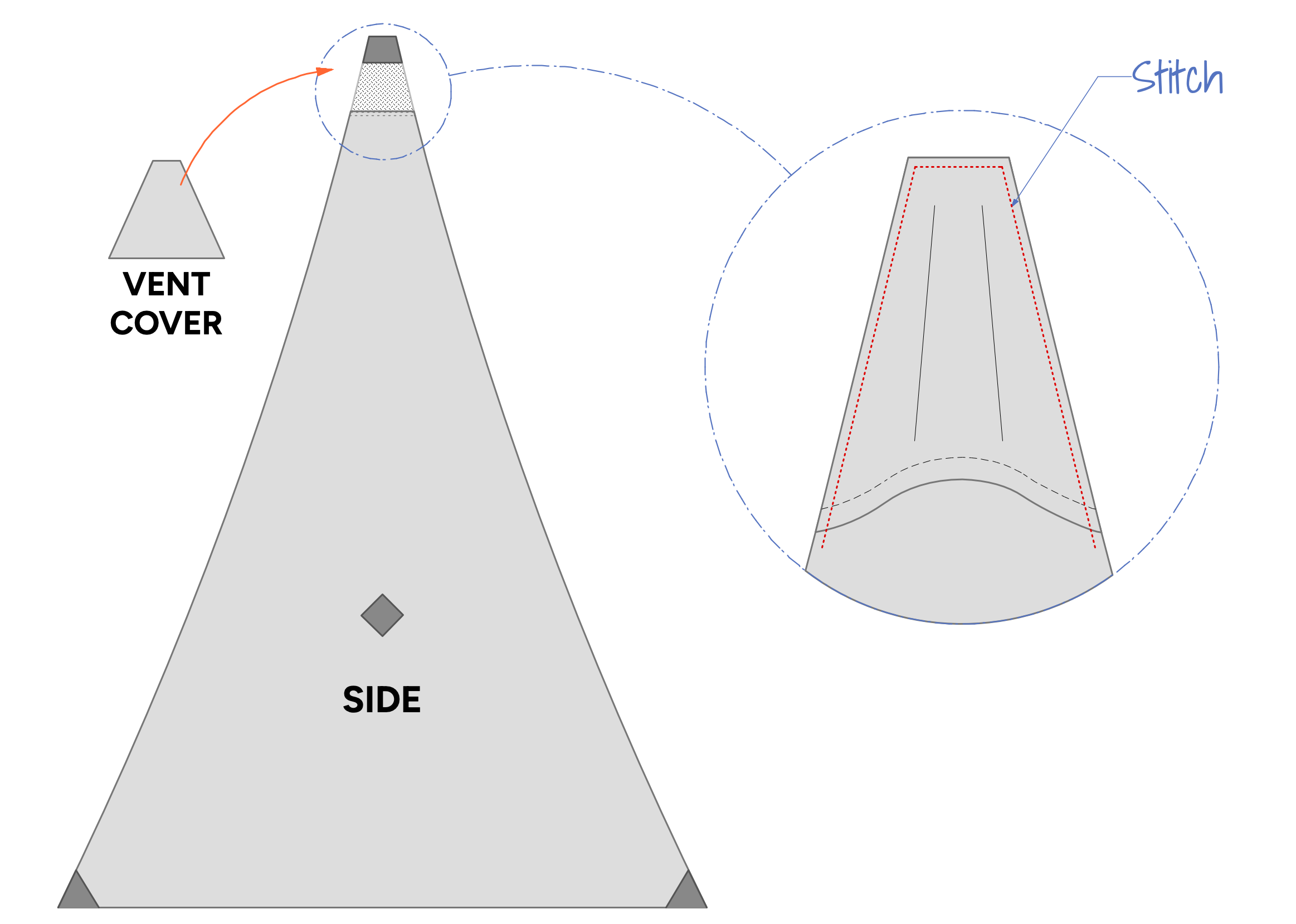Cut the vent covers from the same fabric as the tent panels, to the dimensions shown. Two vent covers are needed.