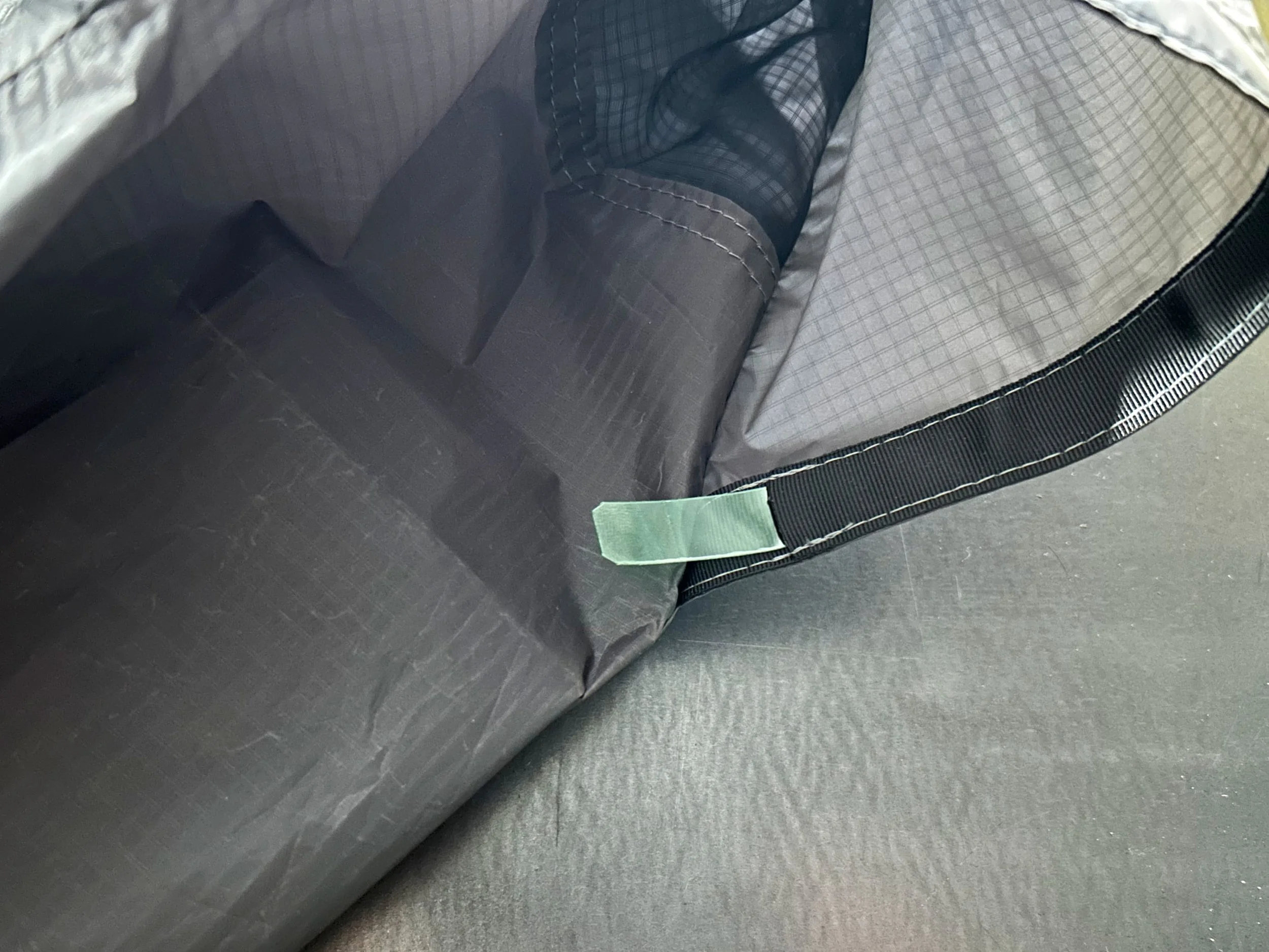 For the main panel construction, I used a simple 3/8" top-stitched seam. This is a straightforward seam that’s easy to sew accurately and, just as importantly, has worked well with seam tape for me in the past. The taped seam lays flat, seals evenly, and hasn’t given me any trouble so far. A top-stitched French seam as shown in this video, would likely be a more durable and traditional choice, especially for long-term use or harsher conditions, but it also adds complexity and bulk. For this project, I opted to keep things simple and stick with what I knew would play nicely with the tape.