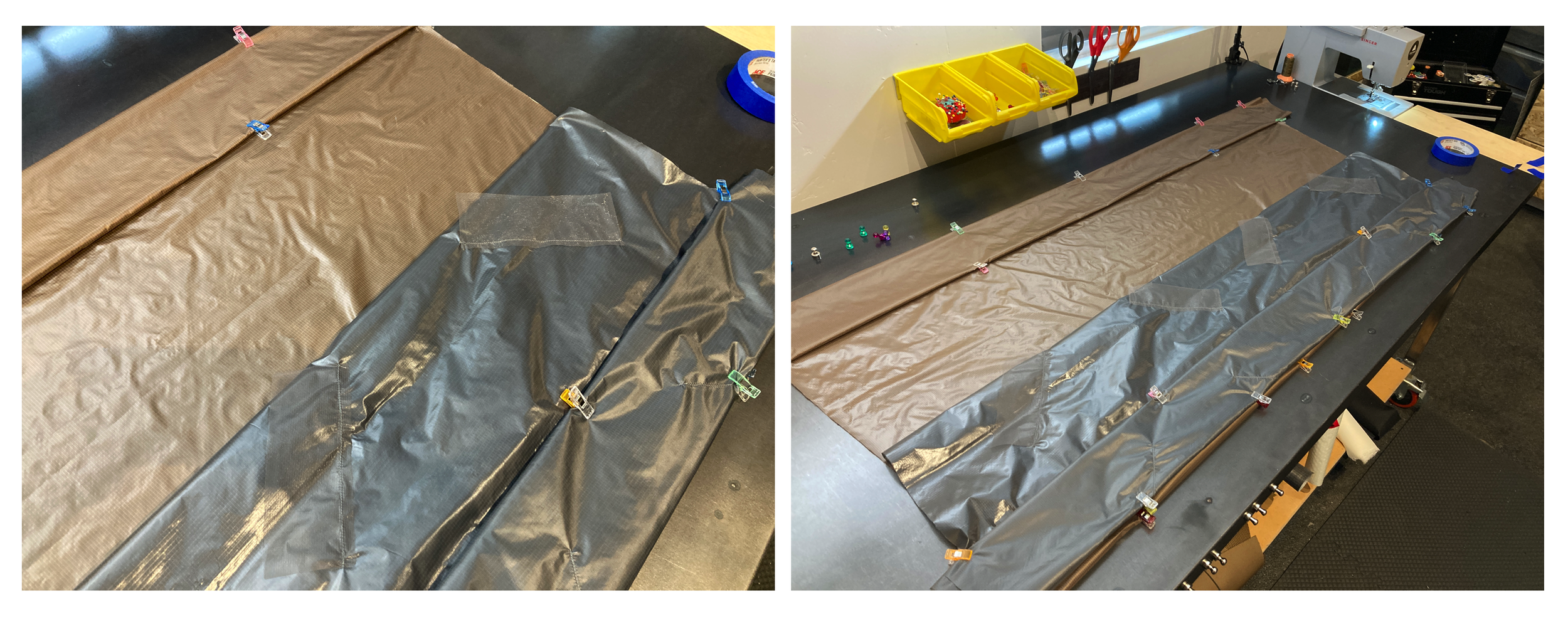 Repeat this process until all baffles are in place. I found that it was easiest to tape two baffles in place and then stitch them before moving on to the next two. (I was able to reuse the same tape pieces several times before new tape was needed.)